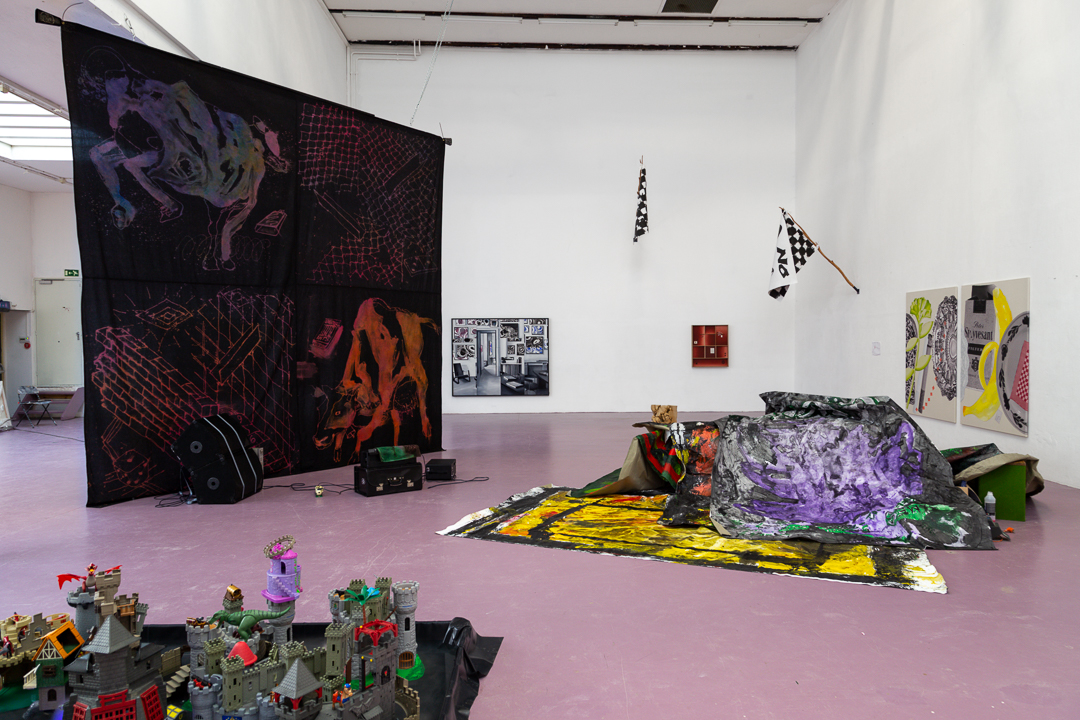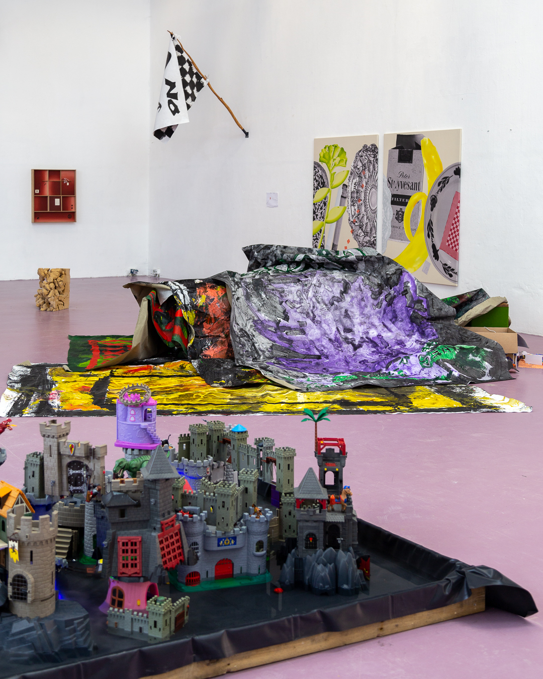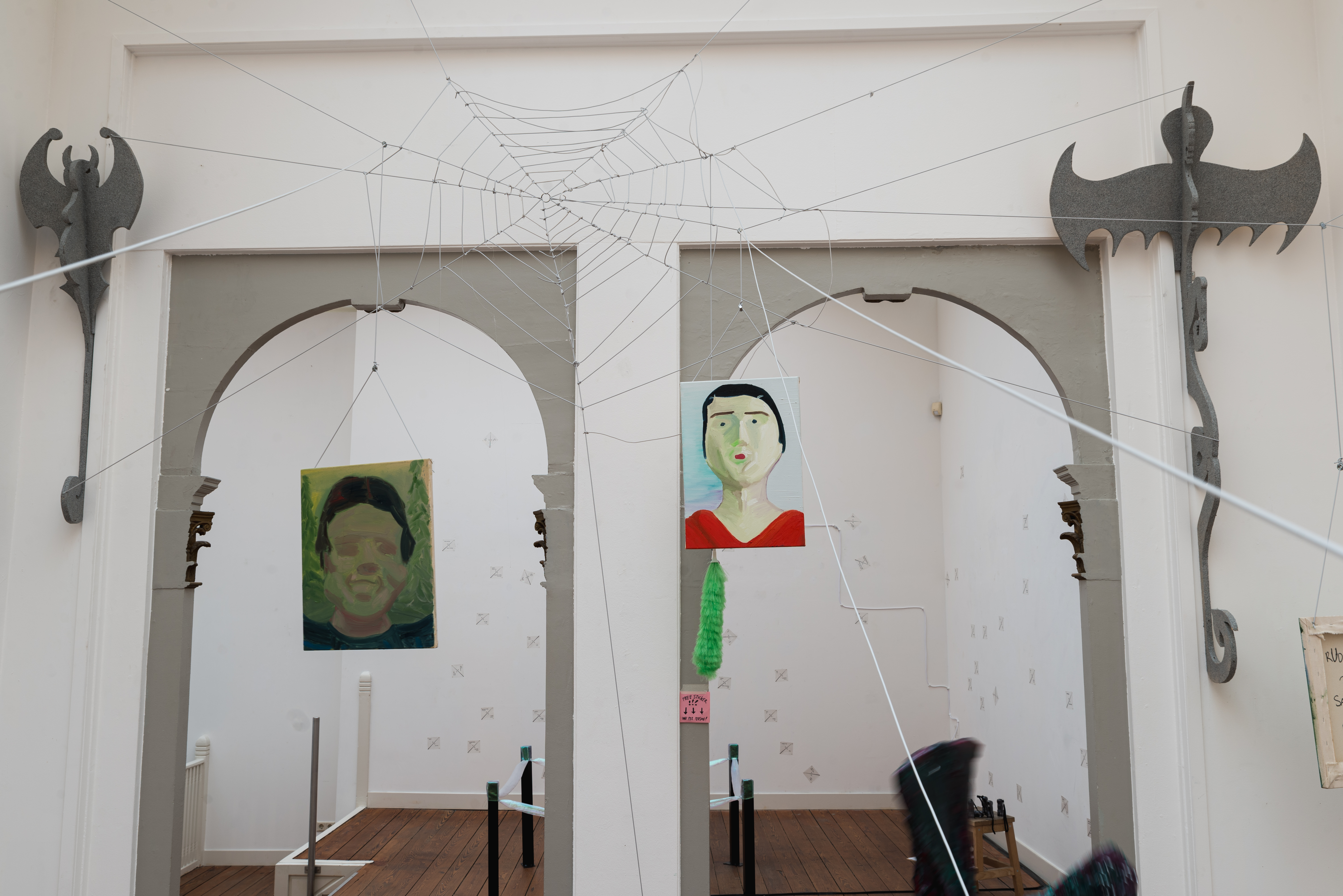 In this duo exhibition, artists Sander van Noort (NL, 1986) and Paul Heusinkveld (NL, 1997) present their work in an art space balancing between restoration and ruin. Responding to the recent renovation efforts at Kunsthal Kloof, Sander and Paul have transformed the exhibition space into a state of “help-my-artist-is-a-handyman.” Presented as incomplete, their works appear amidst slanting walls and scattered construction materials. Insulation foam bulges through cracks, hiding tiny artworks within. Larger pieces burst through flimsy drywall, and improvised installations rise from the floor.